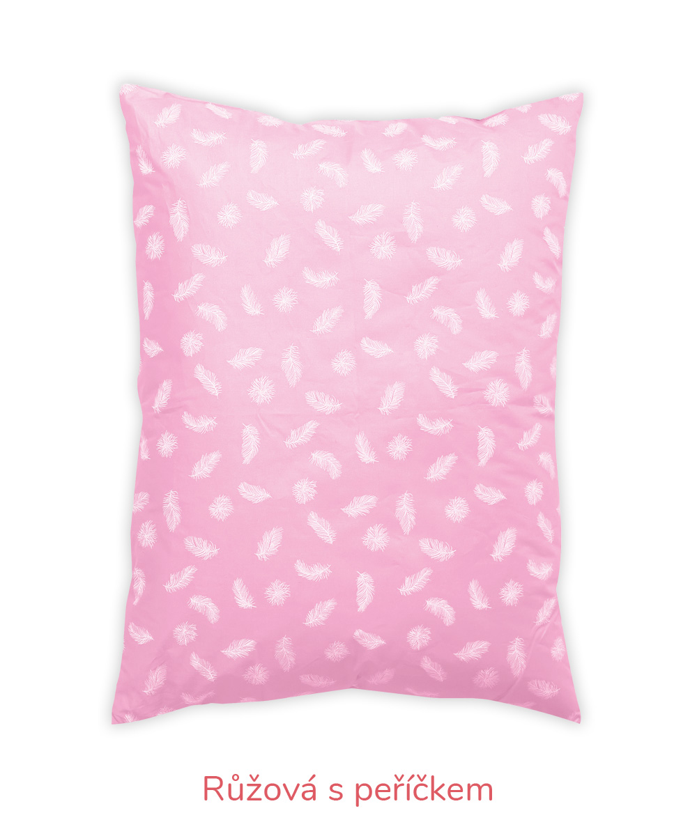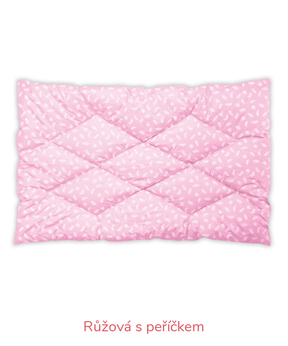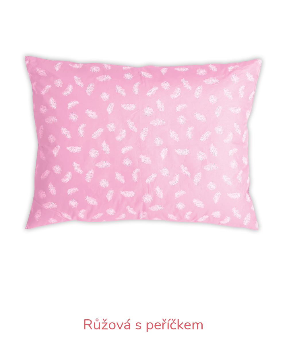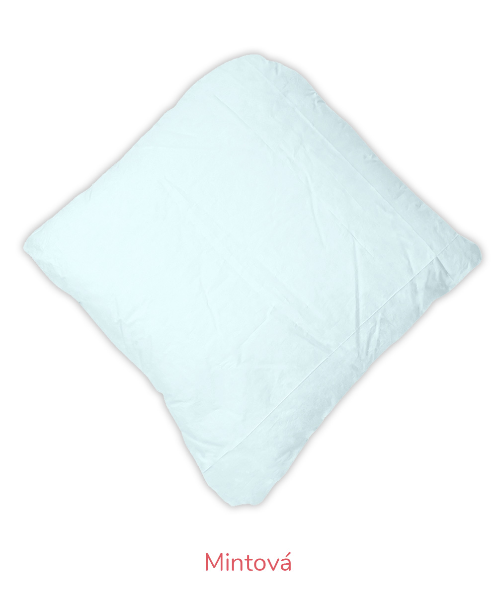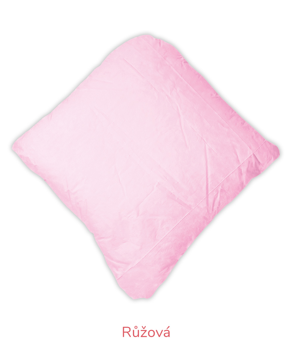 B – Romana – pro náročnější zákazníky, materiál 100% bavlna, jemnější, lehčí, ale hustě tkané sypky, vazba kepr, gramáž 140 g/m2 – bílá, krémová, růžová, modrá, mintová. Sulpa s tiskem – materiál 100% bavlna, pevný, hustě tkaný sypek, vazba plátno, gramáž 165 g/m2 – růžová s peříčkem, modrá s peříčkem.