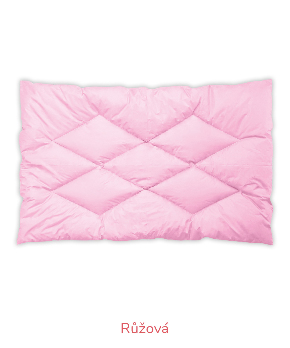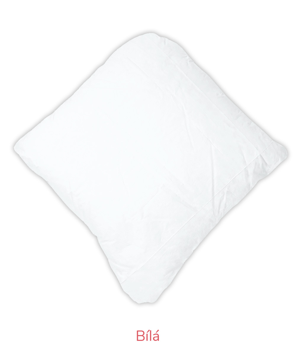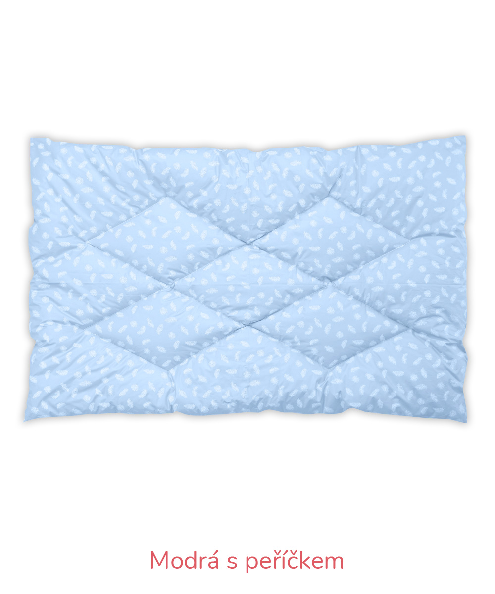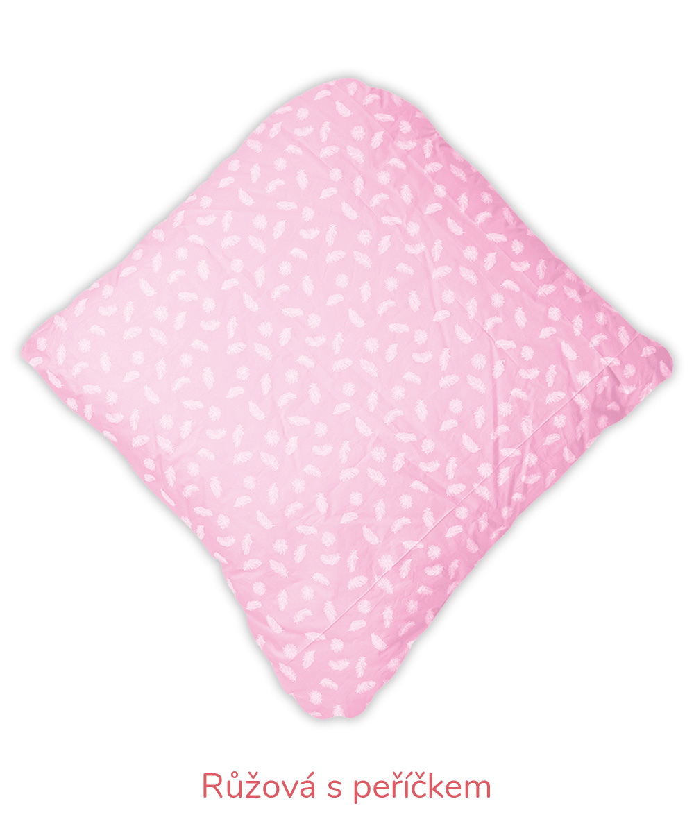 B – Romana – pro náročnější zákazníky, materiál 100% bavlna, jemnější, lehčí, ale hustě tkané sypky, vazba kepr, gramáž 140 g/m2 – bílá, krémová, růžová, modrá, mintová. Sulpa s tiskem – materiál 100% bavlna, pevný, hustě tkaný sypek, vazba plátno, gramáž 165 g/m2 – růžová s peříčkem, modrá s peříčkem.