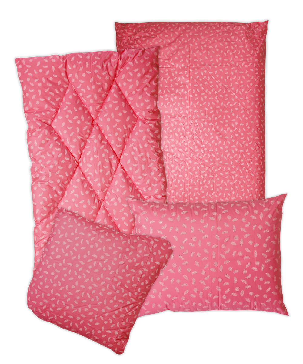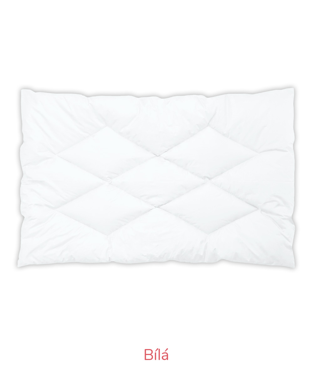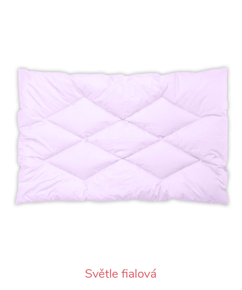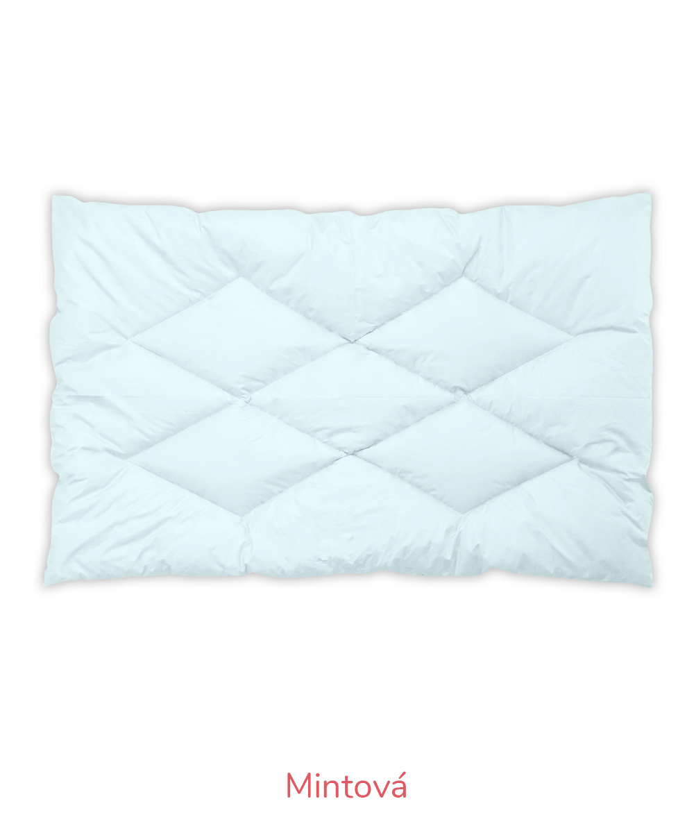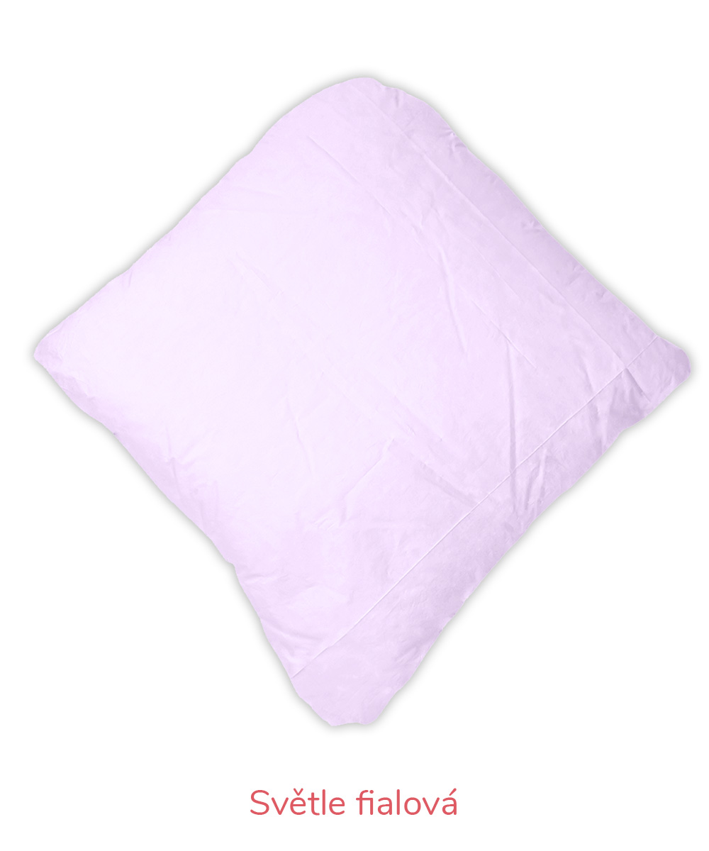 B – Romana – pro náročnější zákazníky, materiál 100% bavlna, jemnější, lehčí, ale hustě tkané sypky, vazba kepr, gramáž 140 g/m2 – bílá, krémová, růžová, modrá, mintová. Sulpa s tiskem – materiál 100% bavlna, pevný, hustě tkaný sypek, vazba plátno, gramáž 165 g/m2 – růžová s peříčkem, modrá s peříčkem.