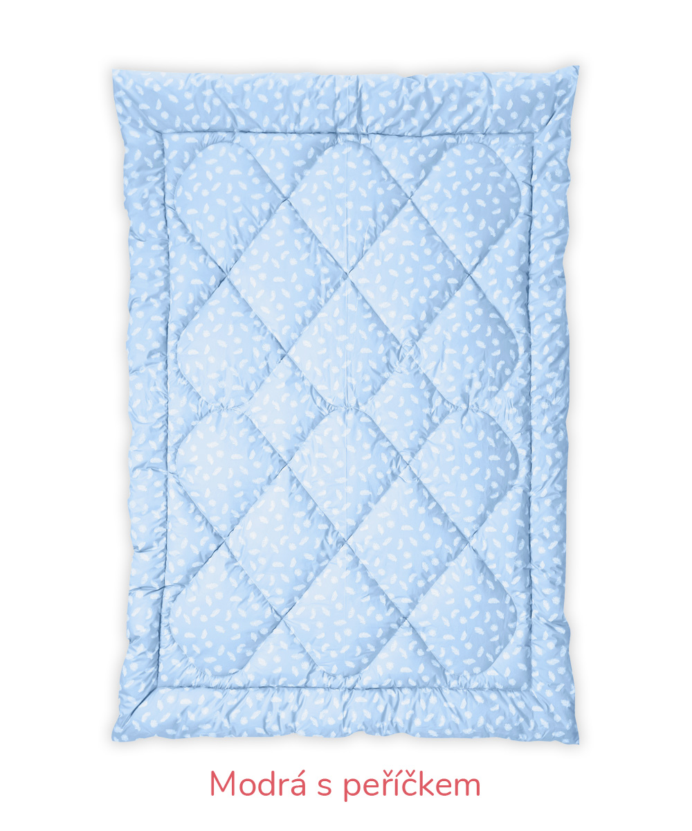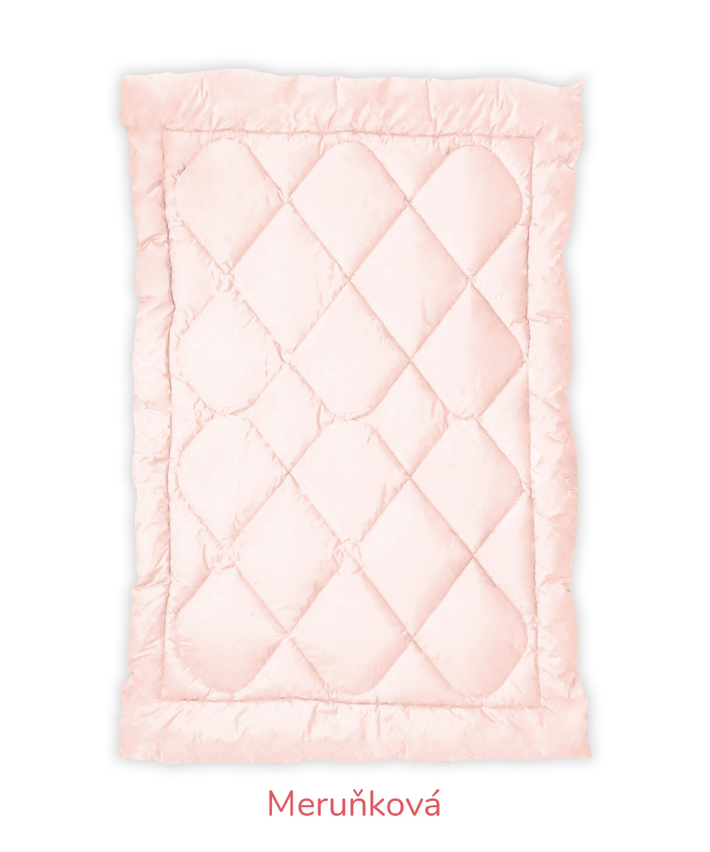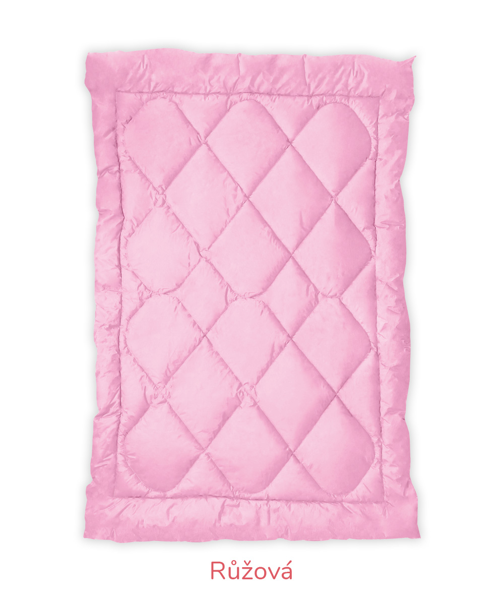 B – Romana – pro náročnější zákazníky, materiál 100% bavlna, jemnější, lehčí, ale hustě tkané sypky, vazba kepr, gramáž 140 g/m2 – bílá, krémová, růžová, modrá, mintová. Sulpa s tiskem – materiál 100% bavlna, pevný, hustě tkaný sypek, vazba plátno, gramáž 165 g/m2 – růžová s peříčkem, modrá s peříčkem.